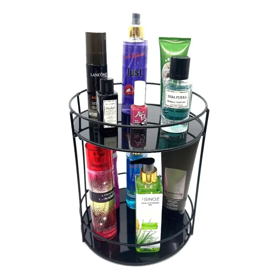 Gelince Haber Ver2 Katlı Banyo Kozmetik Düzenleyici Takı Standı, çok amaçlı servis sunum tepsisi olarak da kullanılabilir. 23 cm boyutuyla ideal bir organizasyon aracı olan bu ürün, şık tasarımıyla banyonuzda ve diğer alanlarda düzen sağlar.