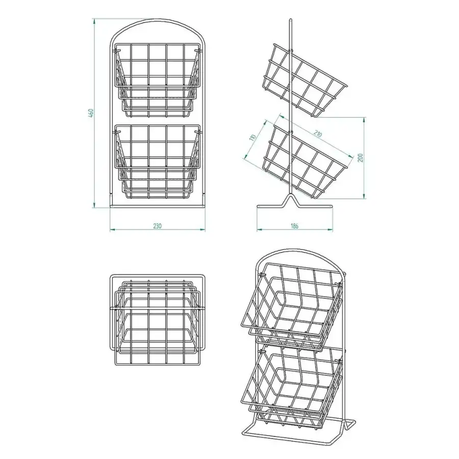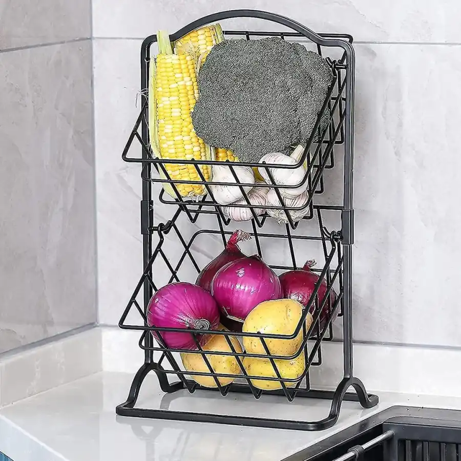 Mutfaklarınızı düzenlemek için ideal bir çözüm! 2 katlı siyah mutfak organizatörü, geniş sepetleriyle meyve ve sebzelerinizi şık bir şekilde sergiler. Dayanıklı metal yapısı ve pratik tasarımı ile her mutfakta yer alması gereken bir üründür. Yer tasarrufu sağlayarak mutfak köşenizde maksimum verimlilik sunar.