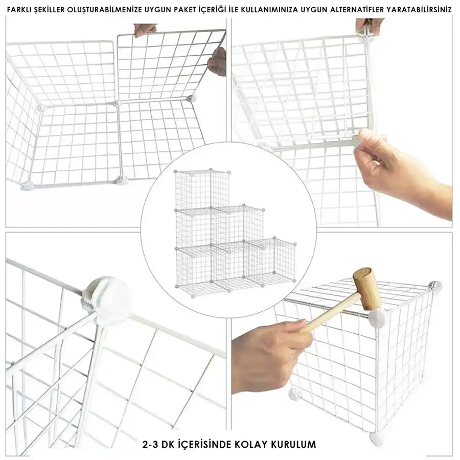 3 Bölmeli Tel Küp Çok Amaçlı Organizer Raf, evinizde düzen sağlamak için mükemmel bir çözümdür. Mutfak, banyo, oyuncak odası ve kiler gibi farklı alanlarda kullanabileceğiniz bu pratik raf, eşyalarınızı düzenli tutmanıza yardımcı olur. Şık beyaz tasarımı, her türlü dekorasyon stiline uyum sağlar.