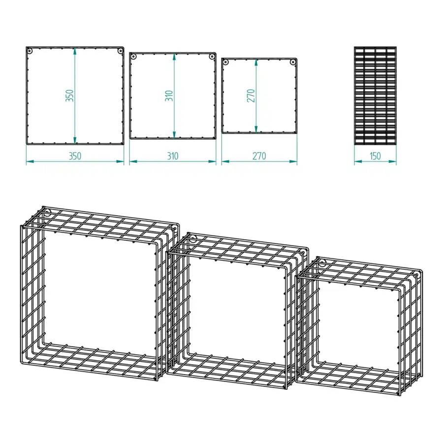 3'lü Set Siyah Tel Hasır Duvar Rafı, modern tasarımı ile ev dekorasyonunuza şıklık katmak için idealdir. Farklı boyutlardaki raflar, çeşitli eşyalarınızı düzenlemenize yardımcı olurken, minimalist görünümü ile her mekana uyum sağlar. Mutfak, oturma odası veya banyo gibi alanlarda kullanılabilir.