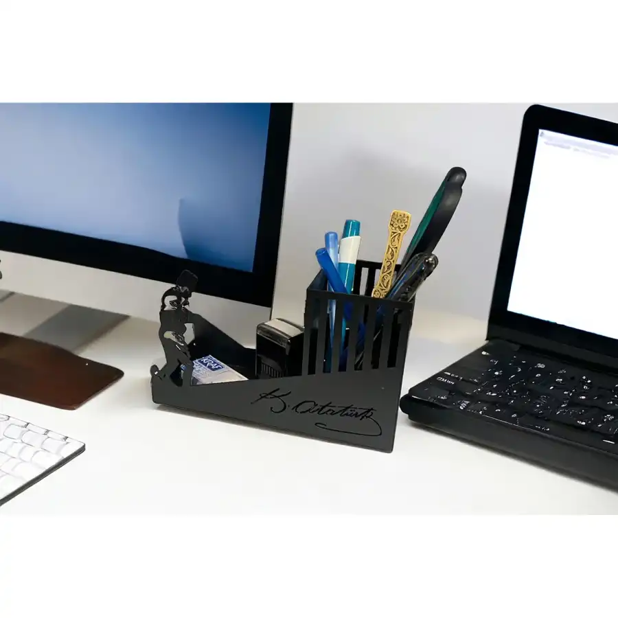 Gelince Haber VerAtatürk Temalı Kalemlik Siyah, ofis dekorasyonunuza anlam katacak şık bir aksesuar. Modern tasarımı ve kaliteli malzemesi ile hem işlevsel hem de estetik bir seçenek sunar. Bu özel kalemlik, Atatürk'ün mirasını yaşatırken çalışma alanınıza zarafet katar. Ürünü hemen keşfedin ve fırsatları kaçırmayın!