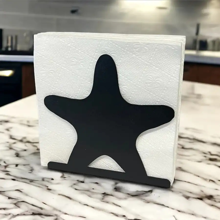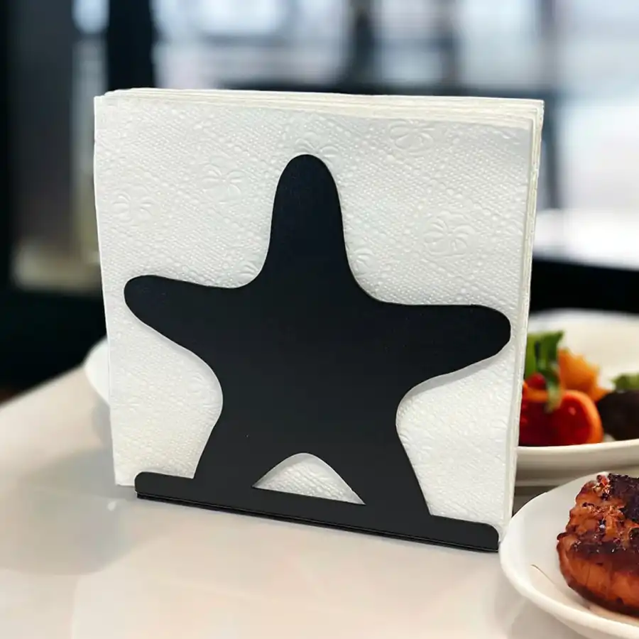 Deniz Yıldızı Temalı Siyah Metal Peçetelik, deniz tutkunları için tasarlanmış şık bir dekoratif üründür. Siyah metal yapısı ve zarif deniz yıldızı motifi ile sofralarınıza estetik bir dokunuş katar. Dayanıklı malzemesi sayesinde uzun ömürlü kullanım sunar ve pratik tasarımı ile peçetelerinizi düzenli bir şekilde saklar. Mutfak ve yemek alanlarınızda hem işlevsel hem de şık bir aksesuar olarak öne çıkar.