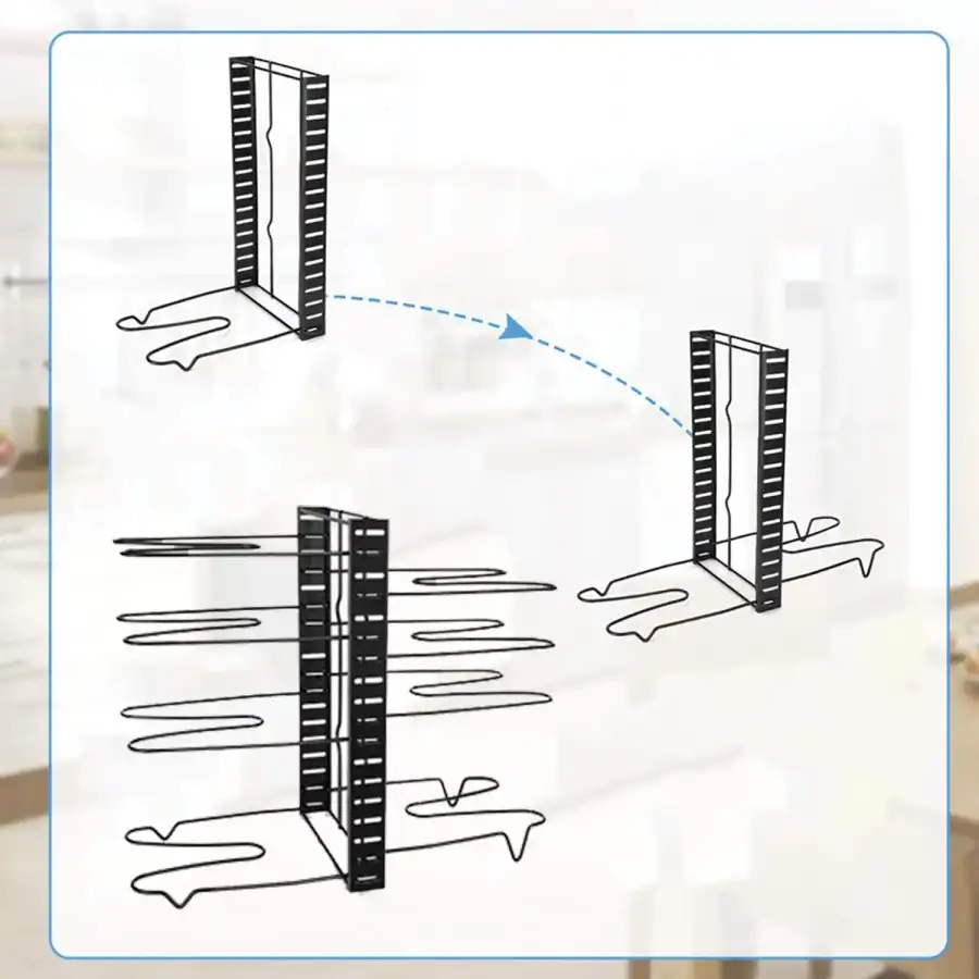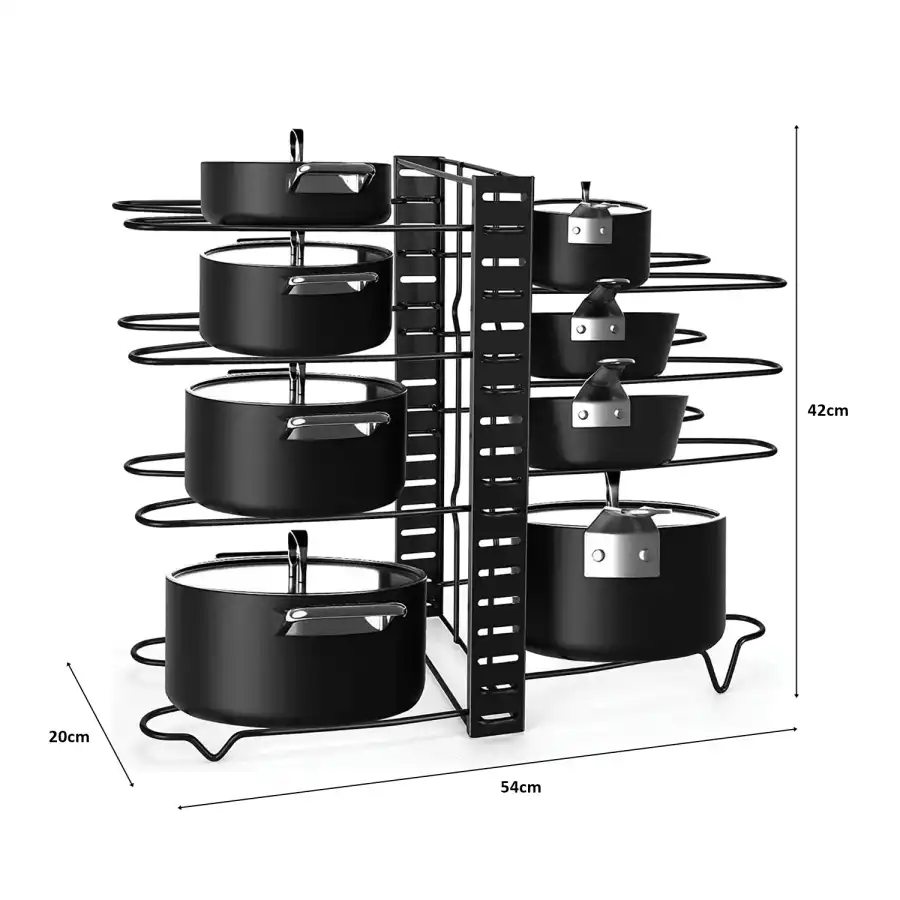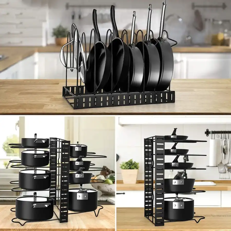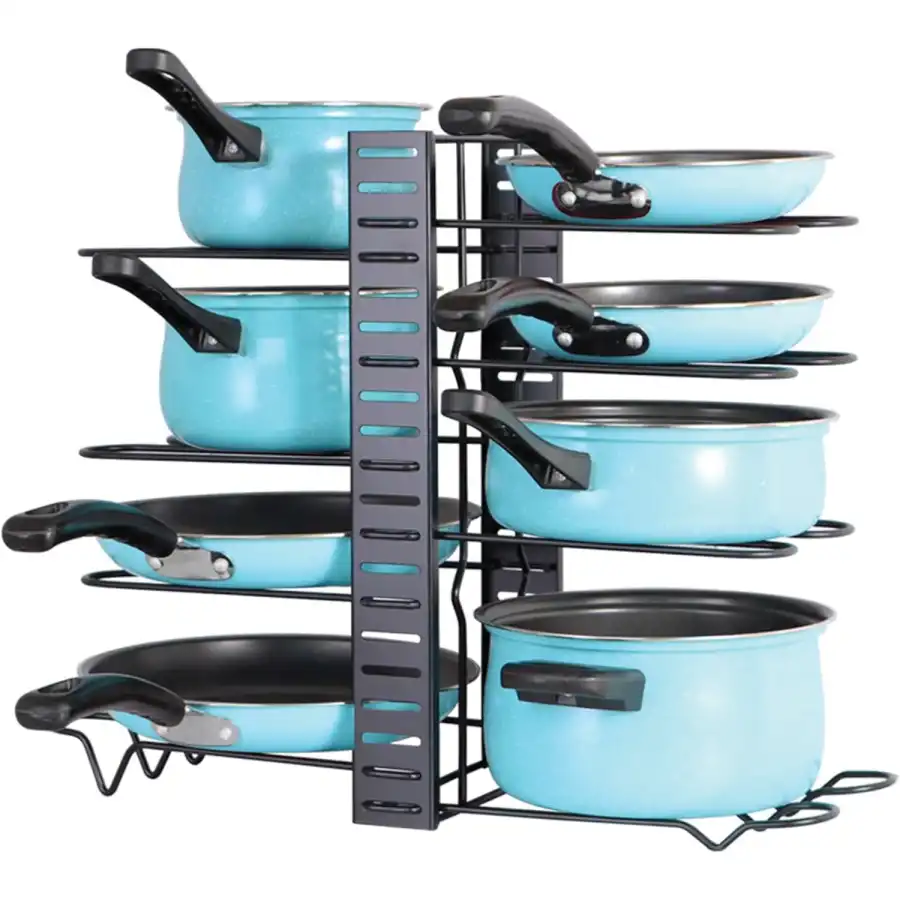 Gelince Haber VerDolap için Tencere ve Tava Düzenleyici Organizer Raf, mutfaklarınızı düzenlemek için mükemmel bir çözümdür. 8 katlı yapısı sayesinde tencere ve tavalarınızı kolayca yerleştirip bulmanızı sağlar. Mutfak dolaplarınızı daha verimli kullanarak, hem alan tasarrufu sağlar hem de mutfak eşyalarınızı düzenli tutar.