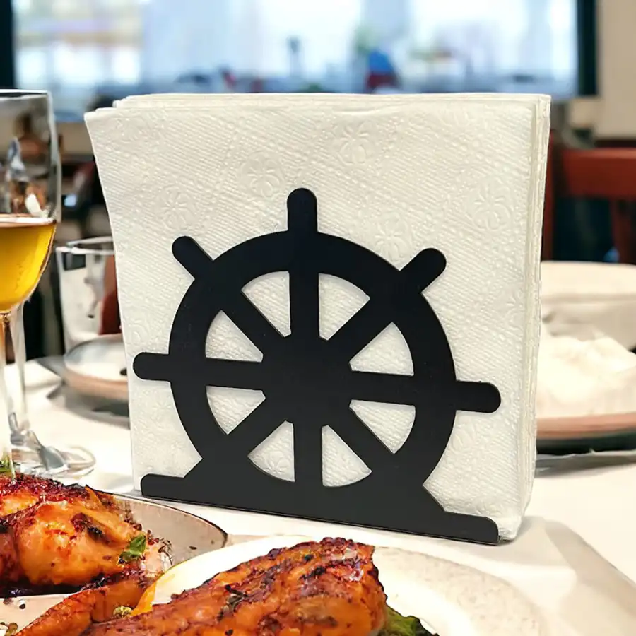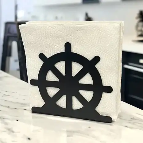 Dümen Temalı Siyah Metal Peçetelik, deniz severler için özel tasarlanmış şık bir dekoratif aksesuardır. Siyah metal yapısı ve etkileyici dümen teması ile sofranıza özgürlüğün simgesini getirir. Dayanıklı malzemesi sayesinde uzun ömürlü kullanım sunarken, pratik tasarımı ile peçetelerinizi düzenli ve erişilebilir tutar. Mavi renk seçeneği ile de farklı zevklere hitap eder. Mutfak ve yemek alanlarınızda hem işlevsel hem de estetik bir dokunuş sağlar.
