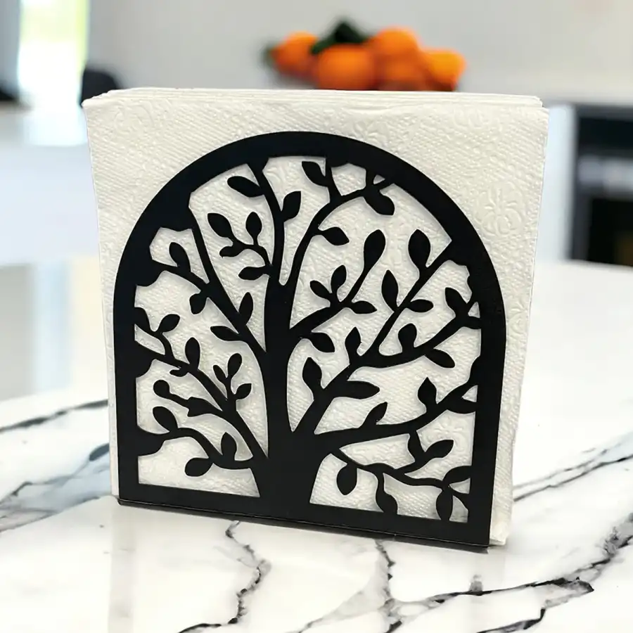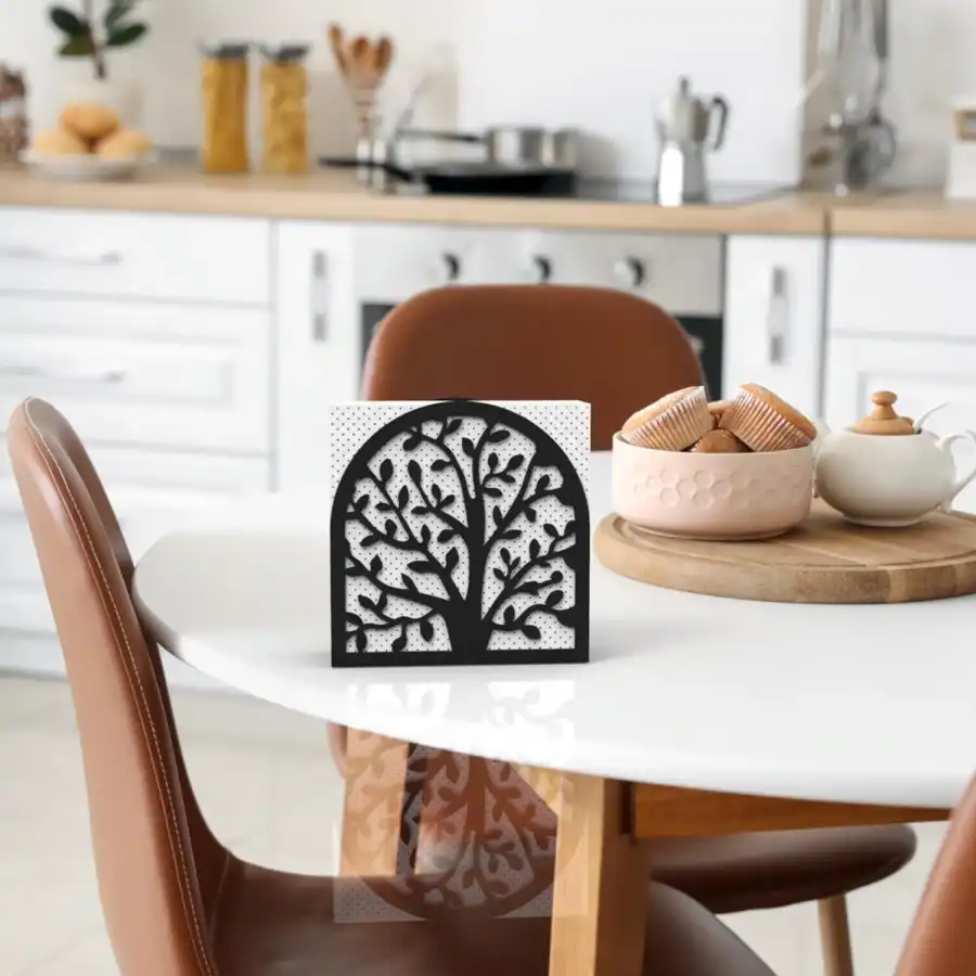 Gelince Haber VerHayat Ağacı Temalı Siyah Metal Peçetelik, şık tasarımı ve kaliteli metal malzemesi ile sofralarınıza zarafet katıyor. Minimalist yapısı sayesinde her türlü sofra düzeni ile uyumlu olan bu peçetelik, sadece peçeteleri düzenlemekle kalmaz, aynı zamanda kartvizit ve not kağıtları gibi diğer eşyaları da organize etmenizi sağlar. Kolay temizlenebilir yapısı ile pratik bir kullanım sunan bu ürün, misafirlerinize unutulmaz bir deneyim yaşatacak. Mutfak ve sofra düzeninizde vazgeçilmez bir parça olacak!