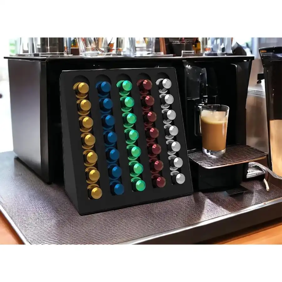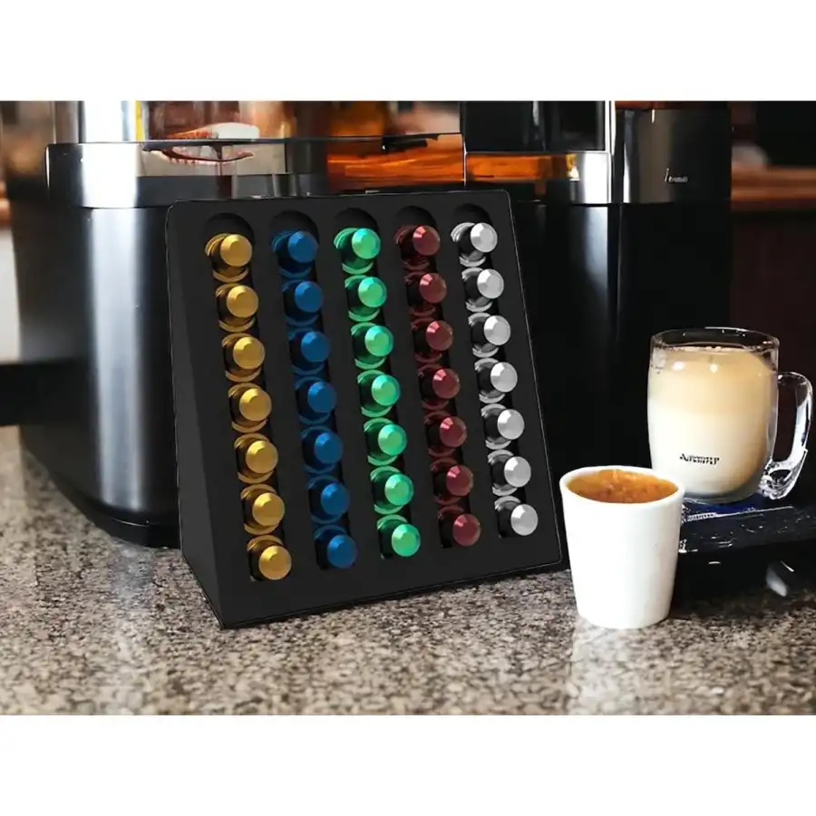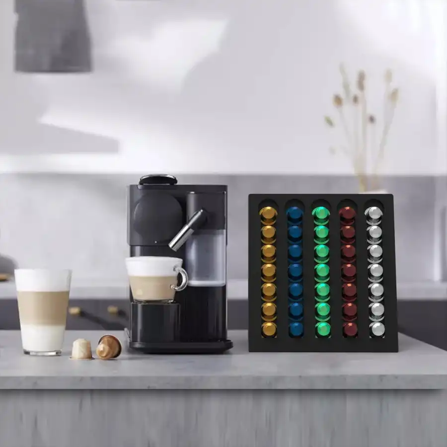 Gelince Haber VerKapsül Kahve Organizer Stand Model 2 Siyah, kahve tutkunları için mükemmel bir çözümdür. Şık ve modern tasarımıyla mutfaklarınıza zarif bir dokunuş katar. Kapsüllerinizi düzenli bir şekilde saklamanızı sağlarken, aynı zamanda kullanım kolaylığı sunar. Siyah rengi ile her türlü dekorasyona uyum sağlar.