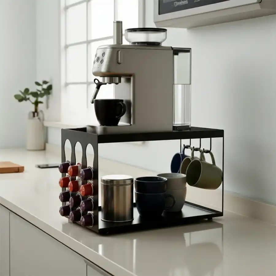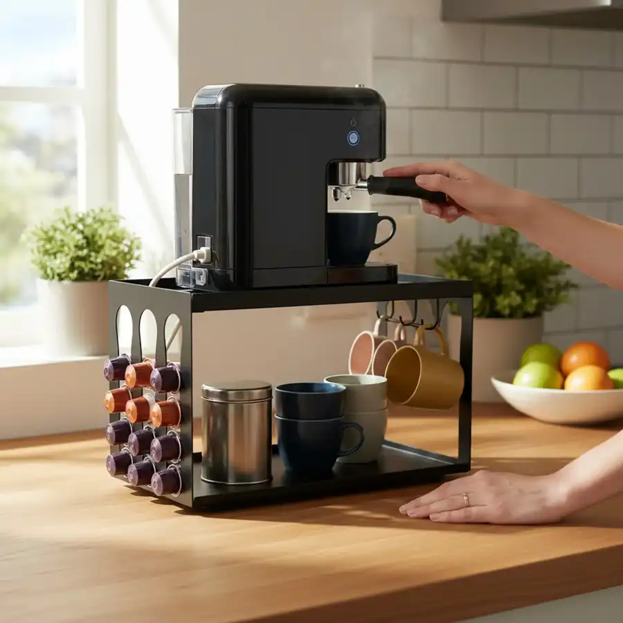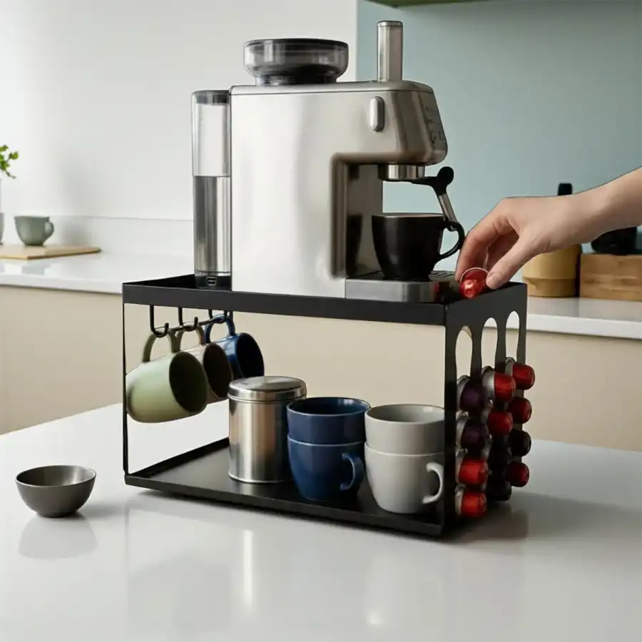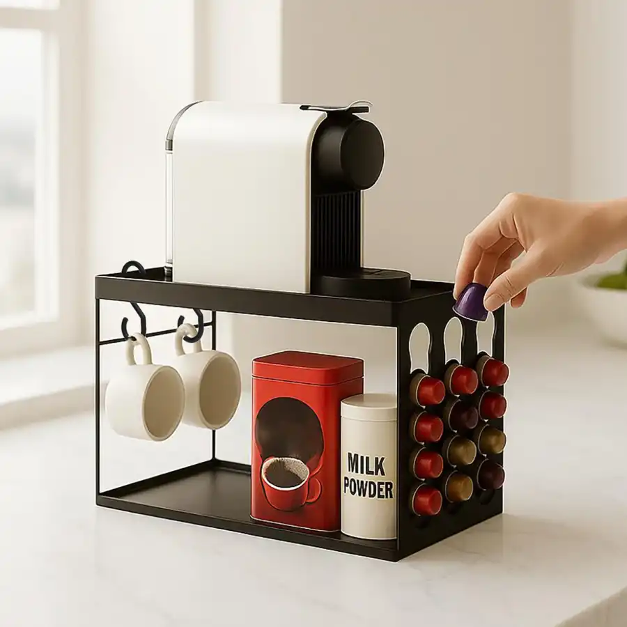 Kapsül kahve düzeninizi sağlamak için tasarlanmış, şık ve pratik bir çözüm! 21 cm yükseklik, 35 cm genişlik ve 20 cm derinlik ölçüleriyle mutfağınıza modern bir dokunuş katacak bu kapsül kahve organizeri, kahve keyfinizi daha düzenli ve rahat hale getiriyor. Askı kancaları ve kompakt tasarımıyla hem estetik hem de işlevsel bir ürün.