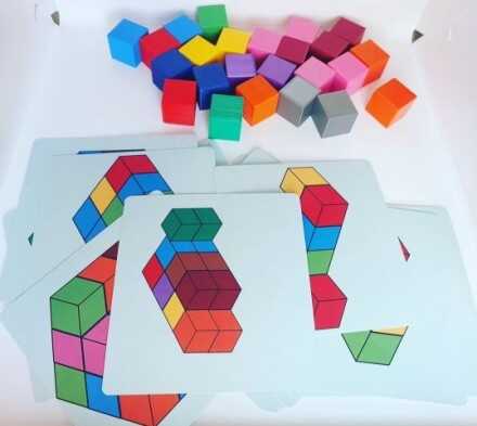 İstenilen renklerde imalatı ve kart yapımı mümkündür, standart setin içinde kırmızı, mavi, turuncu, yeşil ve mordan oluşan 4’er küp (toplam 20 adet küp) ve 20 adet küp inşa kartı mevcuttur. Küp kenarı 3 cm’dir.