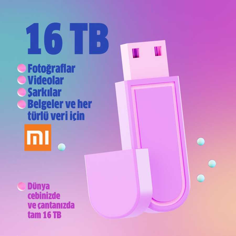 Dünyaca ünlü "Mi" USB 3.2 Flash Sürücü 16 Tb