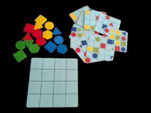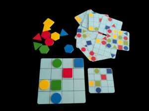 - 4 farklı renkten oluşan (mavi, kırmızı, sarı ve yeşil) ve içinde 4 farklı şekilden oluşan (altıgen, kare, üçgen ve daire) toplamda 16 adet parça.