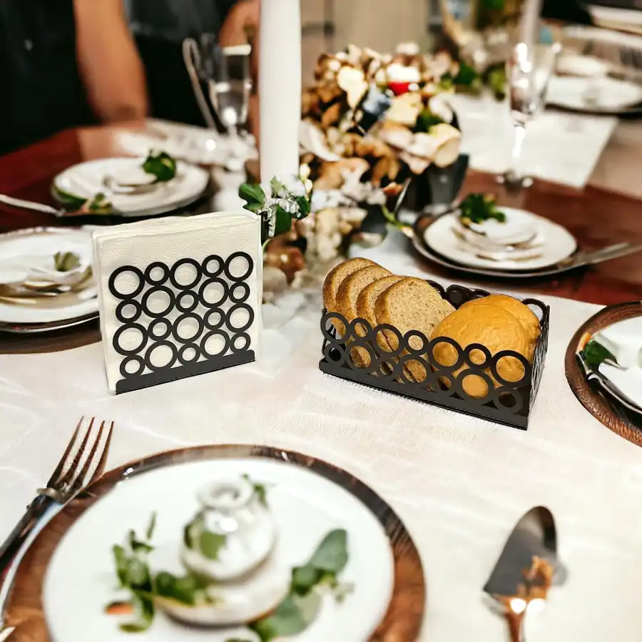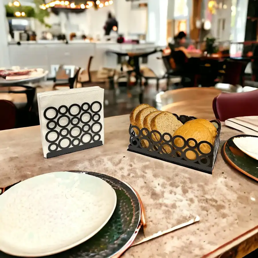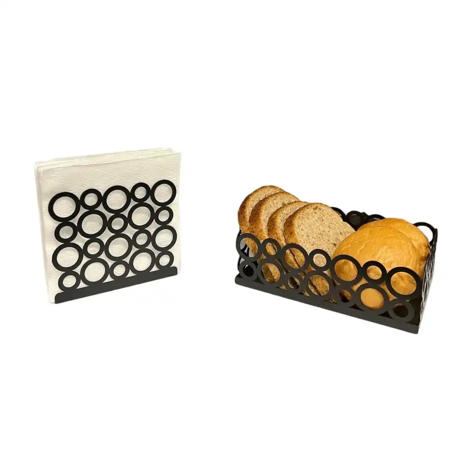 Gelince Haber VerSiyah Renk 2'li Set Ekmek Sepeti ve Peçetelik, modern ve şık bir tasarıma sahiptir. Sofralarınıza zarif bir dokunuş katarak, ekmeklerinizi düzenli bir şekilde saklamanızı sağlar. Peçetelik ise peçetelerinizi şık bir şekilde sunar. Siyah rengi ile her türlü masa dekorasyonuna uyum sağlar.